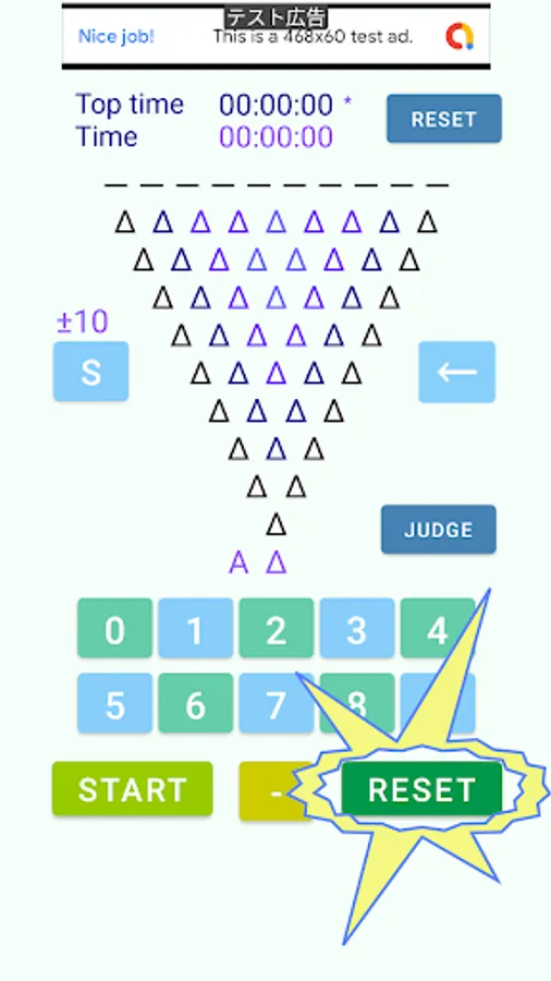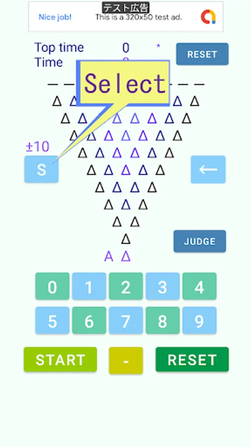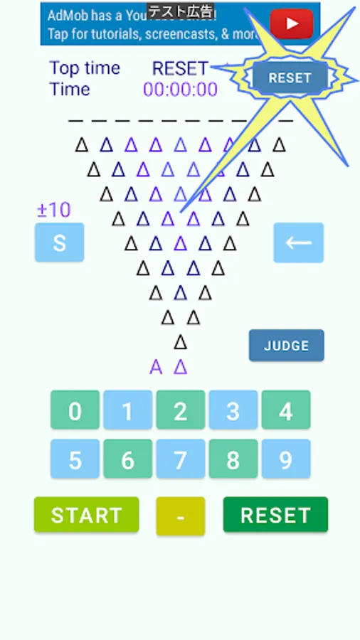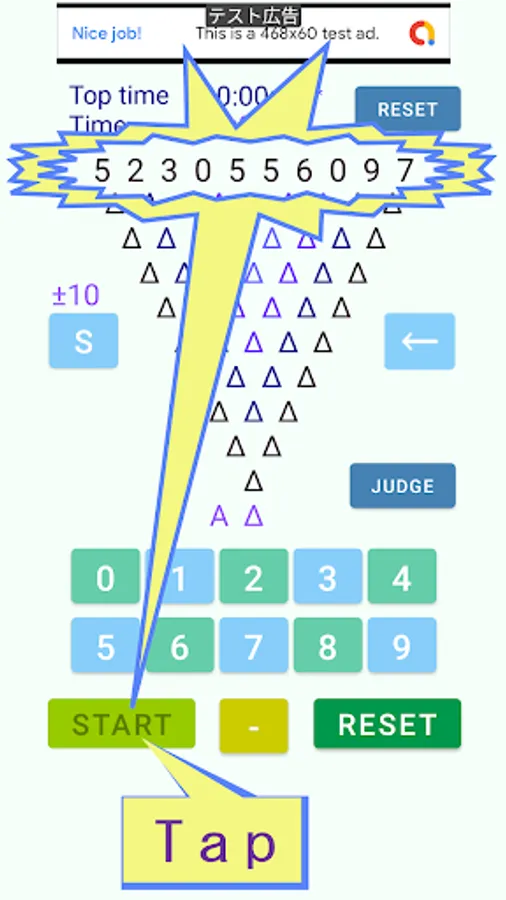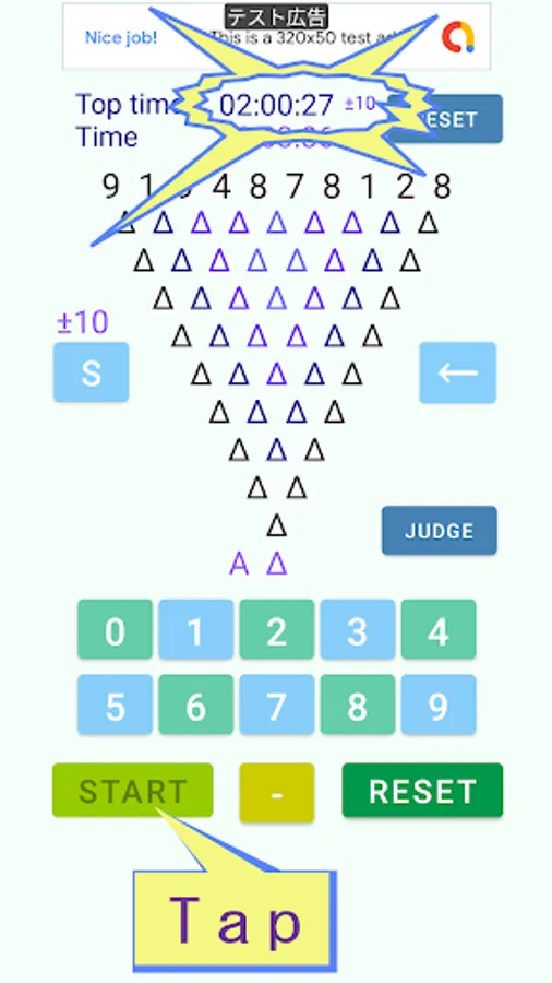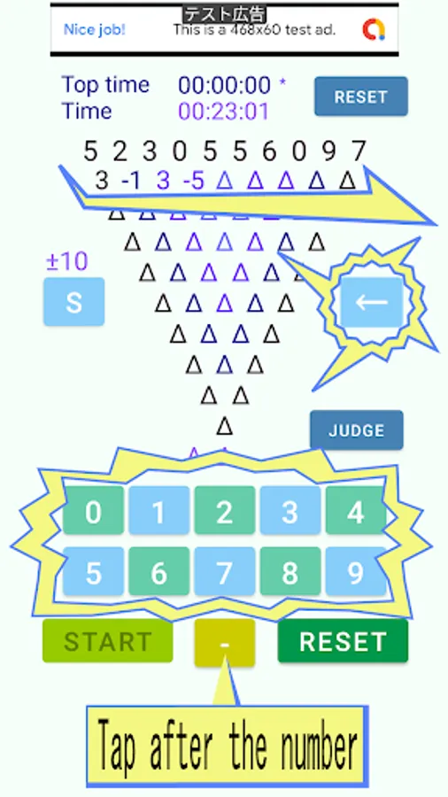 It is a game to compete for the time to arrange one digit number by subtracting two numbers arranged by inverted pyramid calculation.