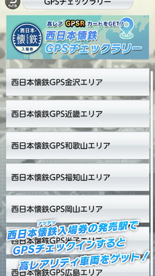 Get a total of 32 types of Kaitetsu trains at 24 JR West stations using your smartphone's GPS function!