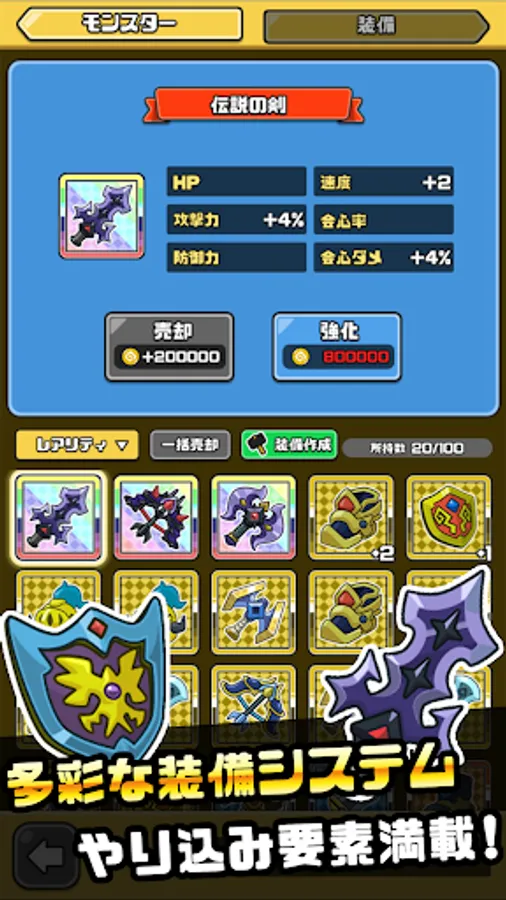 The key to strengthening monsters is training and equipment! Synthesize monsters to inherit skills and become even more powerful! If you customize the equipment that suits the monster, you can fight in battle! Cultivate your own monster and overwhelm your opponent!