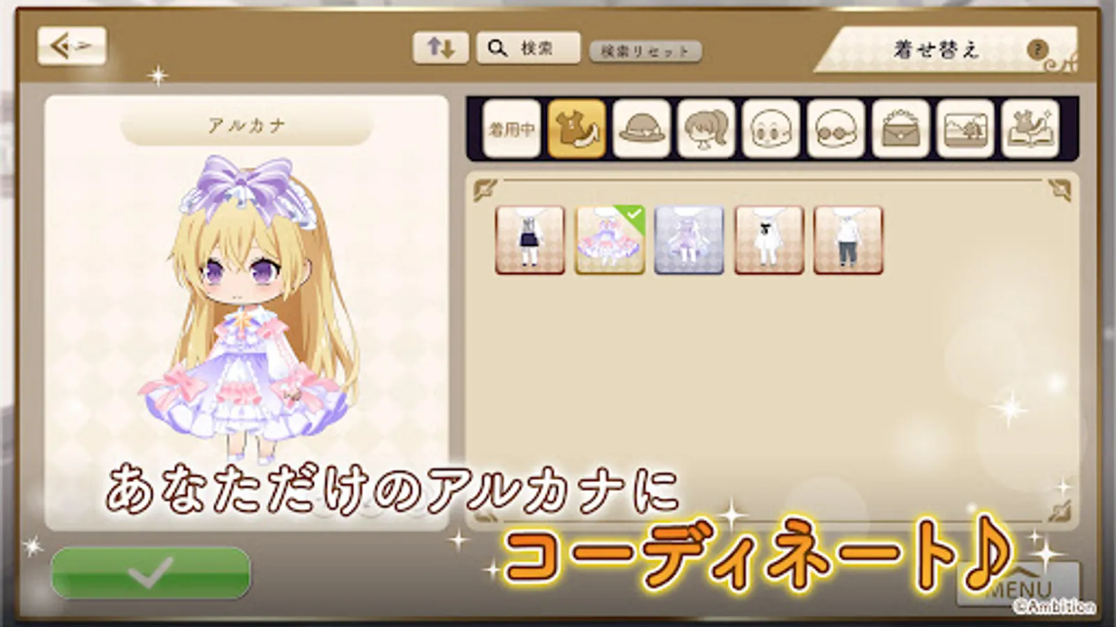 A soothing dress-up game where you can live with my own spirits, "Arcana", at the magic school.