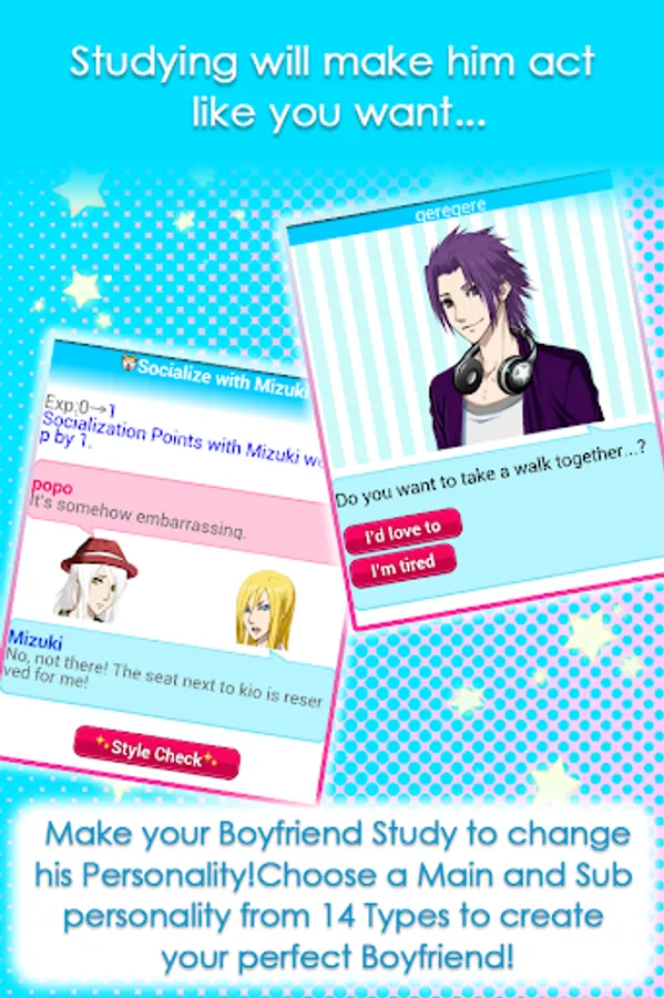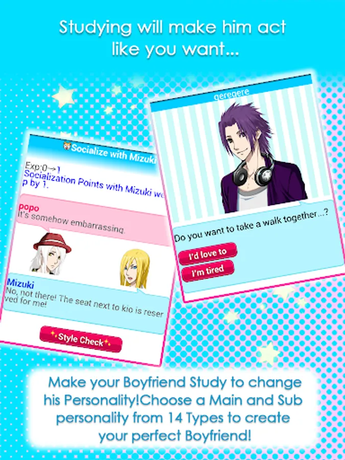 - Talk with him, go on dates and get close to one another with seasonal Events and Scenarios!