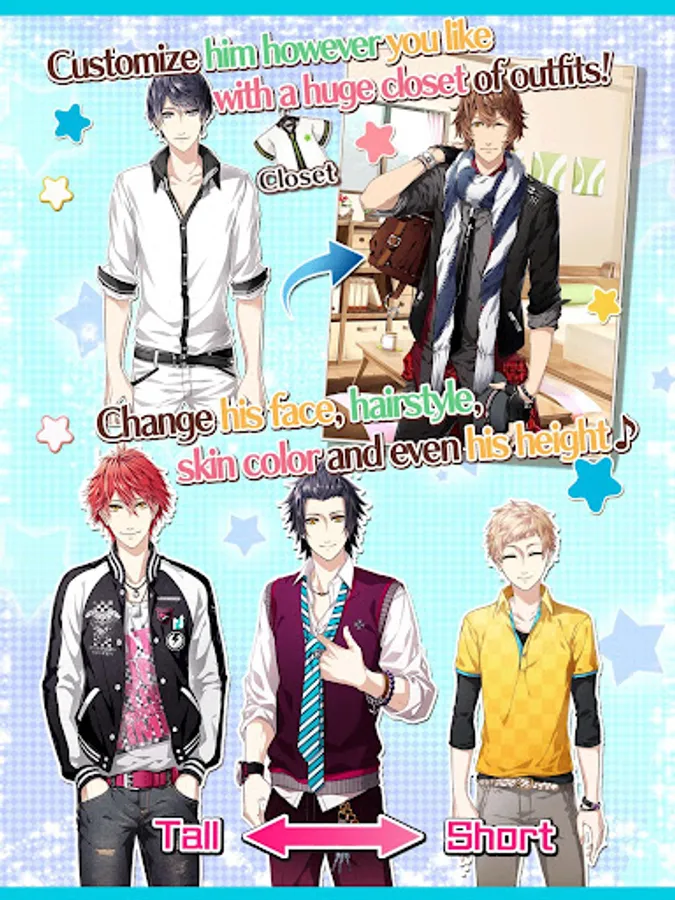 ・Create your own fully-customizable, stylish anime guy (up to 3 in total)!