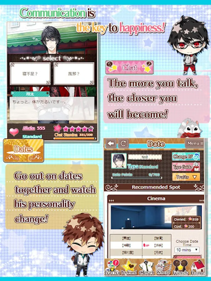 ・Chat, Work and go on Dates with your boyfriend to get closer, unlock new content and even earn in-game money!