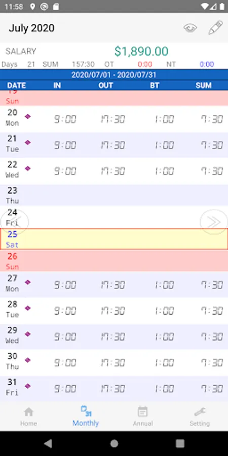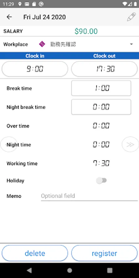 If you set the hourly wage · display monthly data, the amount paid for the current month to screen widgets