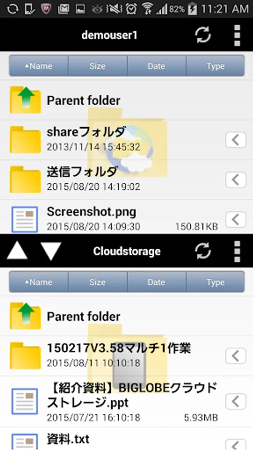 Please be careful not to uninstall "BIGLOBE Cloudstorage (Android application)" when transferring server connection information.