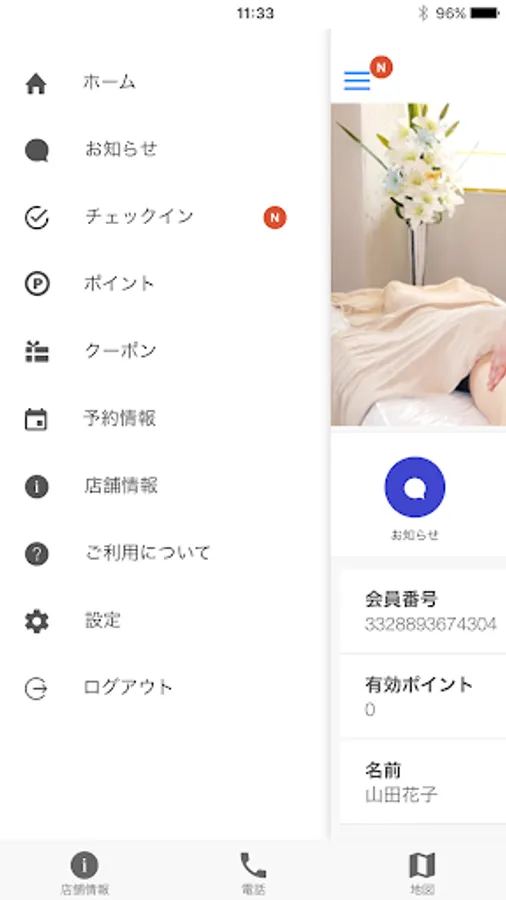 This app is a membership card app of esthetic salon DR · HAYASHI.