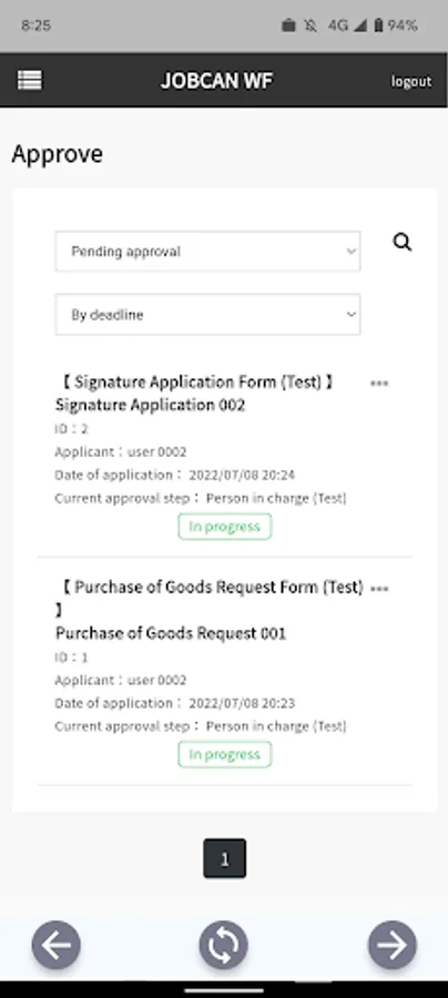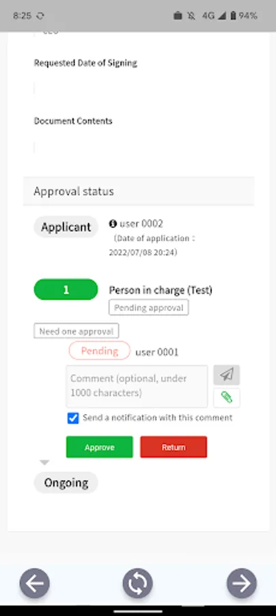 Just by tapping a button it is possible to proceed with the approval process quickly and easily.