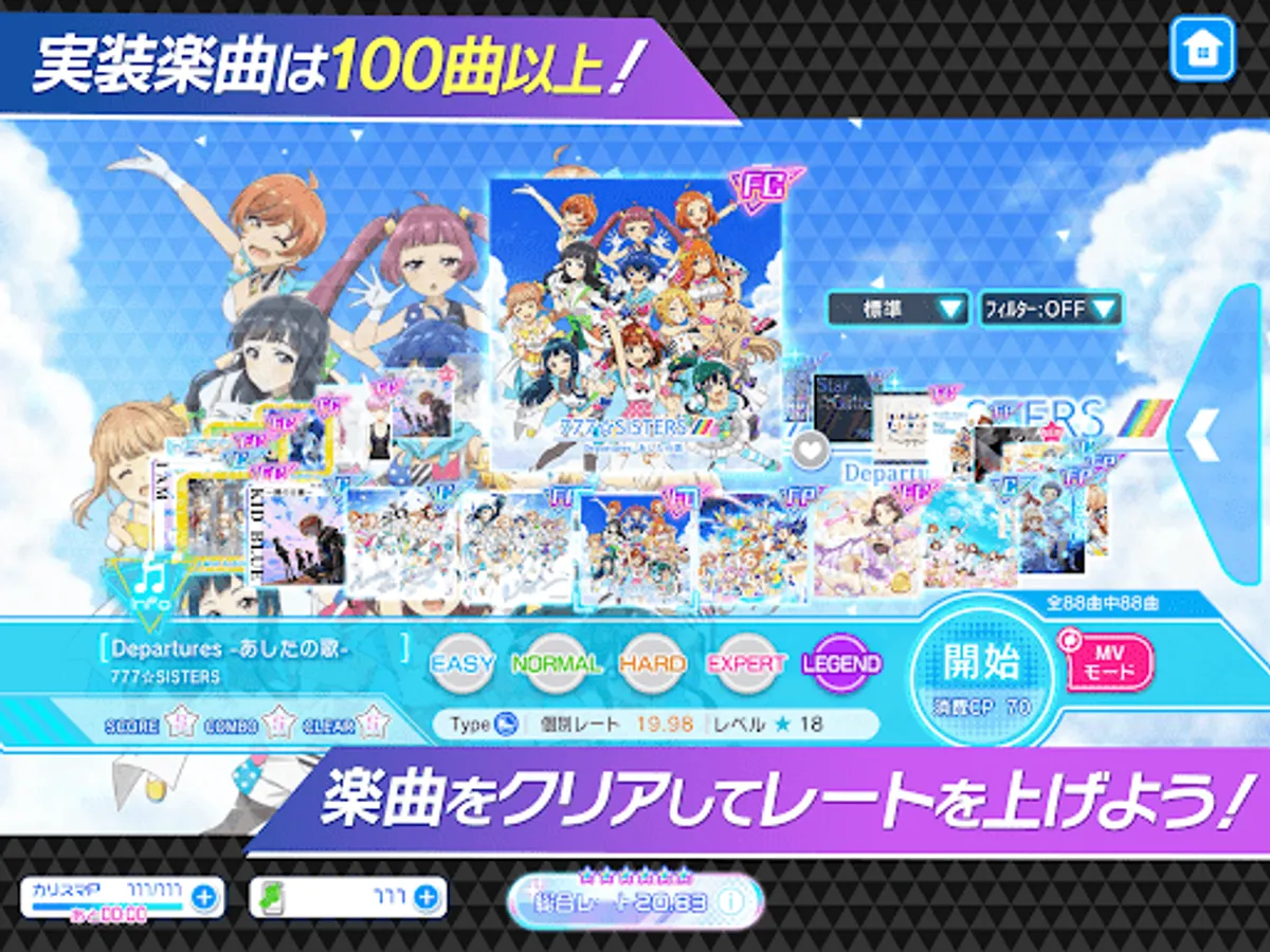 You can play with more than 100 songs including "Star Glitter" composed by kz (livetune)!