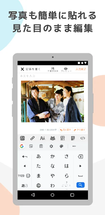 ・You can save drafts of blog articles and edit them from your PC or other devices.