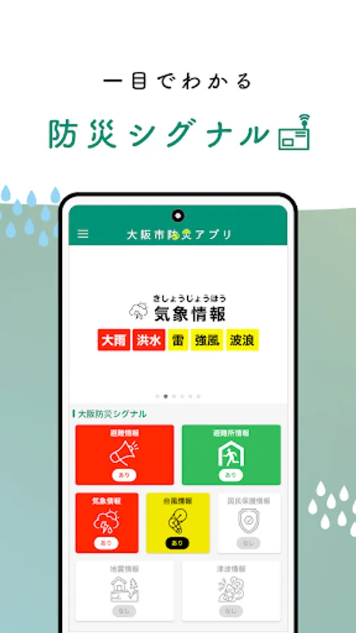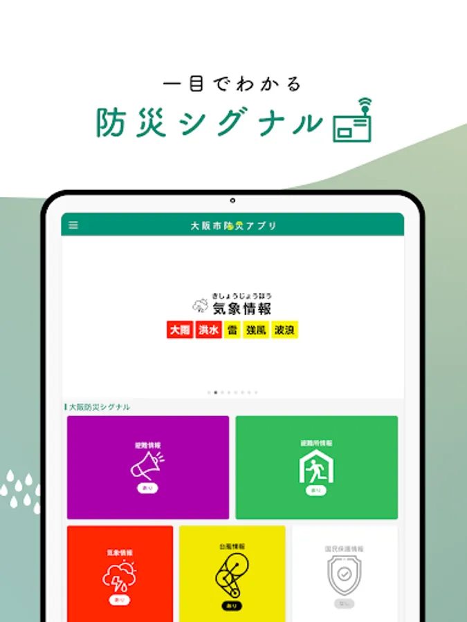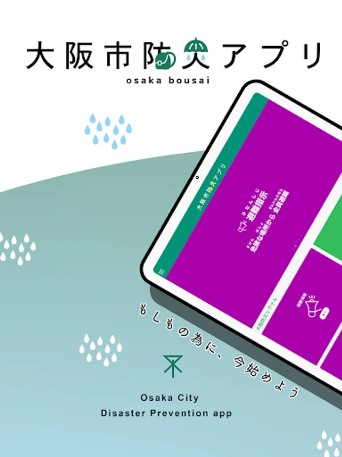 The "Osaka City Disaster Prevention App" includes evacuation shelter establishment status in the event of a disaster, distribution of disaster prevention information by push notification, safety notification using Google Person Finder, hazard maps such as inundation assumption map, disaster prevention in case of disaster. It is a multilingual (English / Chinese / Korean) compatible application with useful functions such as guides, buzzers and smartphone lights.