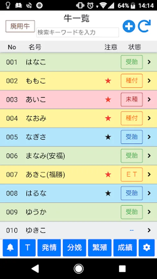Observing the breeding status of cows, cows scheduled for estrus, cows scheduled for calving, etc.