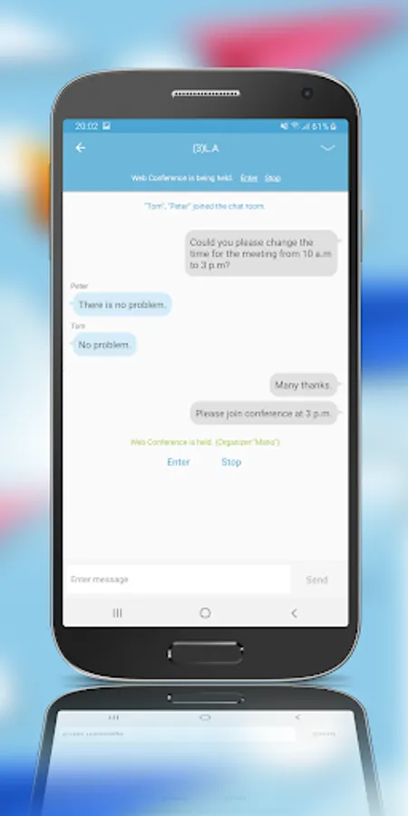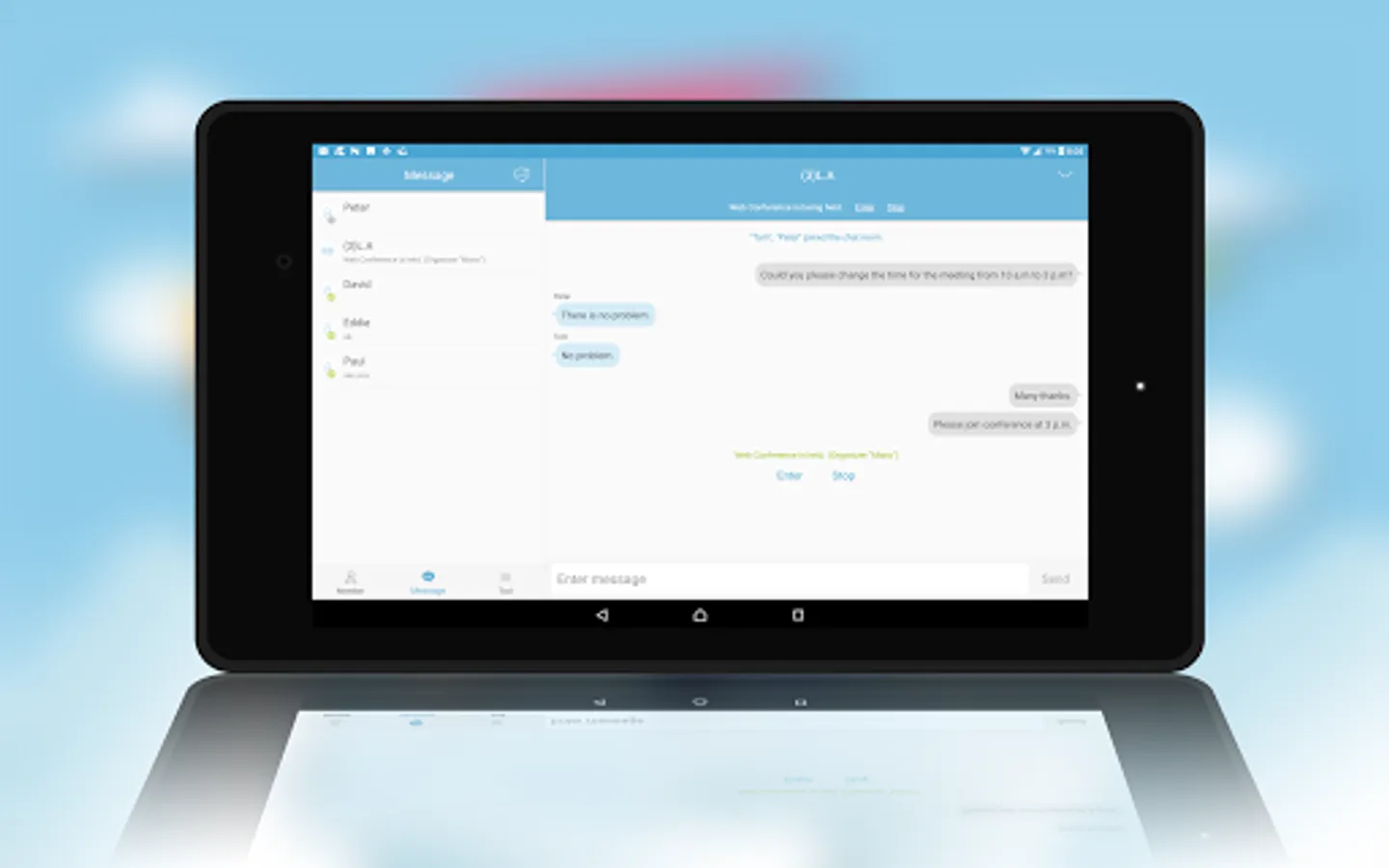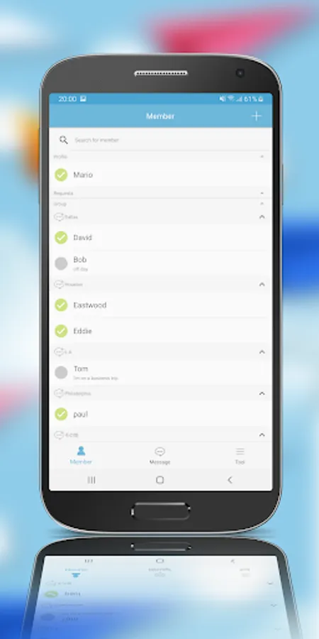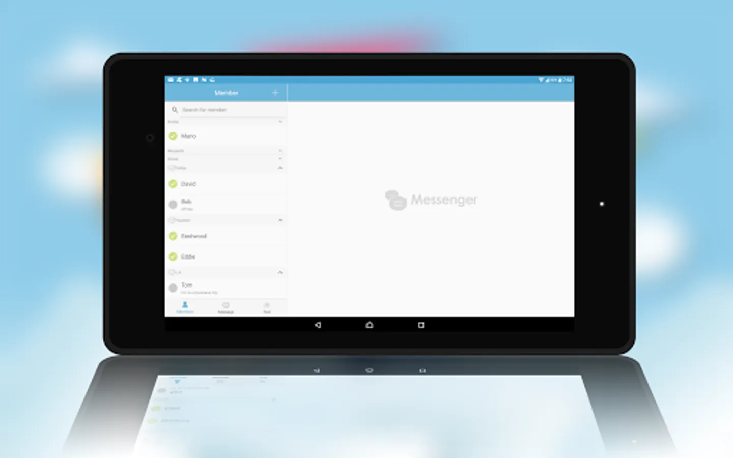 You can check the status of members at a glance and can send/receive messages and invite to a web conference at any time when they are in the login state.