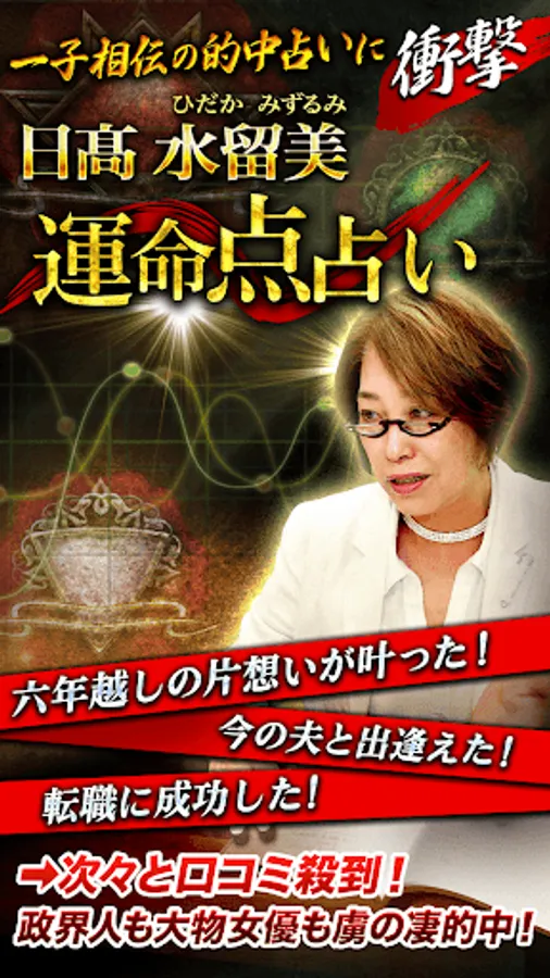 本アプリでは、日髙水留美の鑑定を受けることができます。
