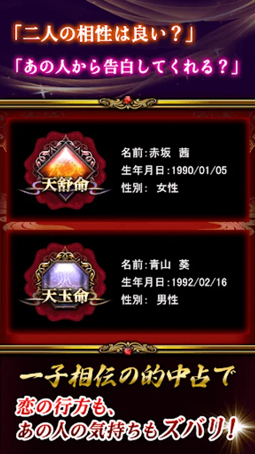 衝撃走る、一子相伝の的中占いをお楽しみください!