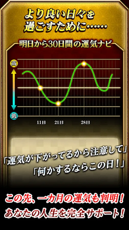 ※有料にて購入された鑑定メニューは、メニュー一覧下の「購入履歴」から何度でも閲覧することができます。ただし、端末を移行された場合は履歴情報が引き継がれませんので、画面キャプチャ等で保存することをおすすめいたします。