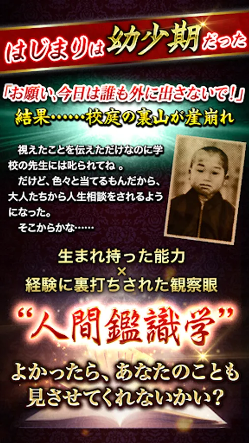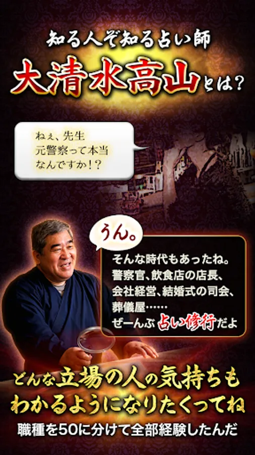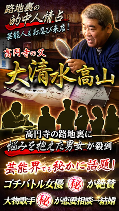 本アプリでは、高円寺の父・大清水高山の鑑定を受けることができます。