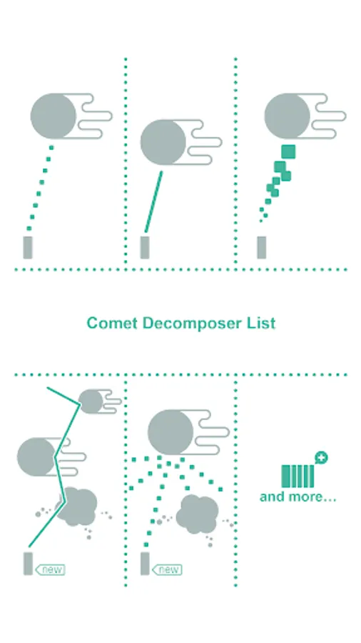 You will have a variety of Comet Decomposer choices, including the new Spread Shot, Reflection Shot and Charger type, as well as the standard Cannon, Missile and Laser.