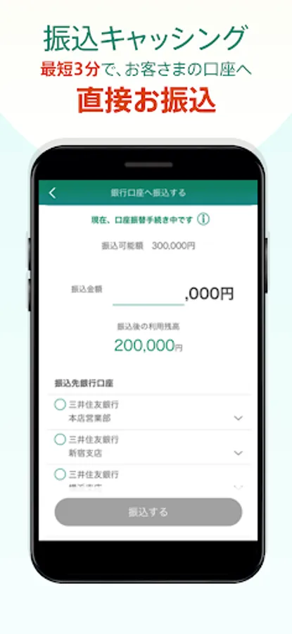 There are a lot of functions such as cardless borrowing, same-day cashing, document sending by taking a picture of the document and sending it, biometric login and auto-login.