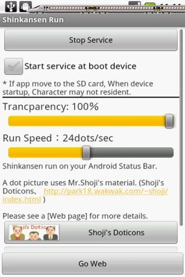 Very beautifull Shinkansen train run on your Android Status Bar.