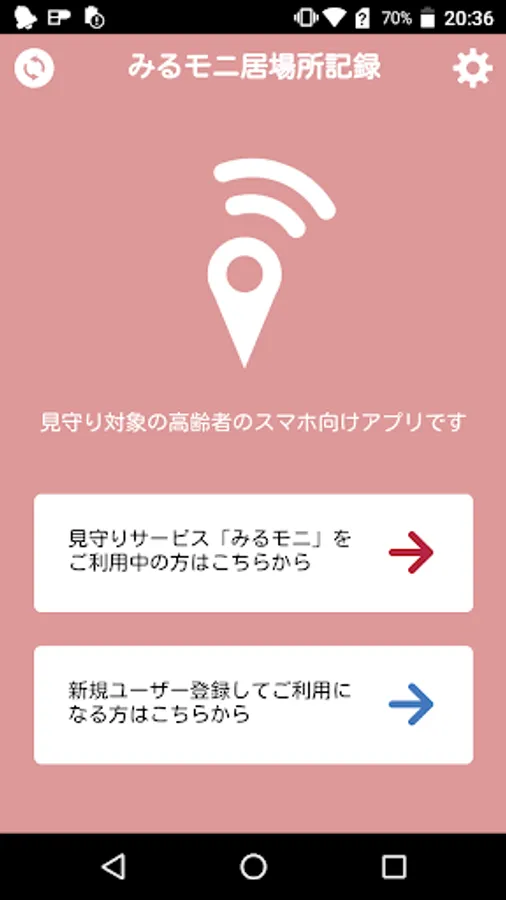 Mirumoni Whereabouts Watching is used as a set of "Mirumoni GPS" installed on the smartphone of the person being watched over and "Mirumoni" used on the smartphone of the person watching over. This location confirmation function can be used free of charge by those who are using the watching service "Mirumoni" as well as those who are not using it.