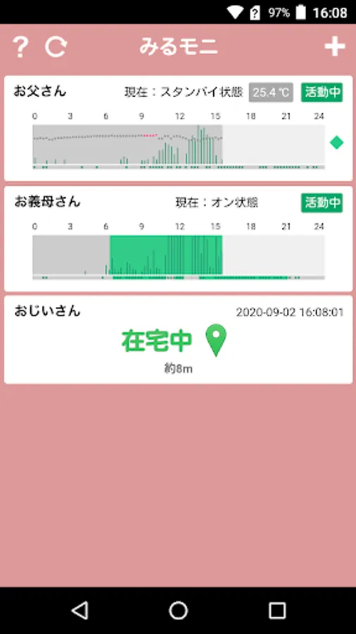 It is also possible to monitor the status of home/going out and whereabouts by linking with the “Miru Moni Location Information” app.