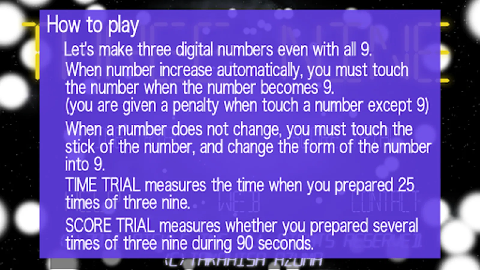 TIME TRIAL measures the time when you prepared 25 times of three nine.