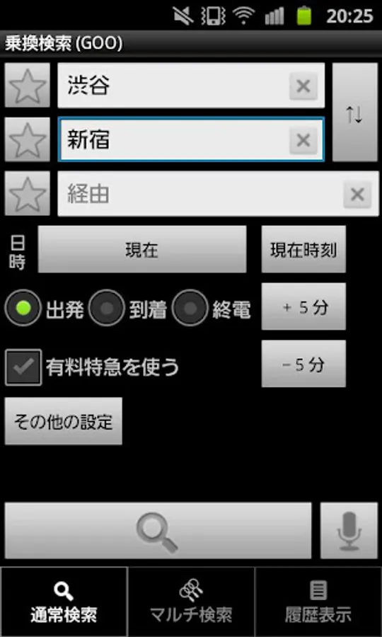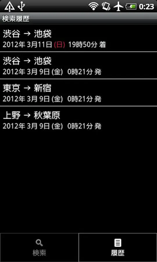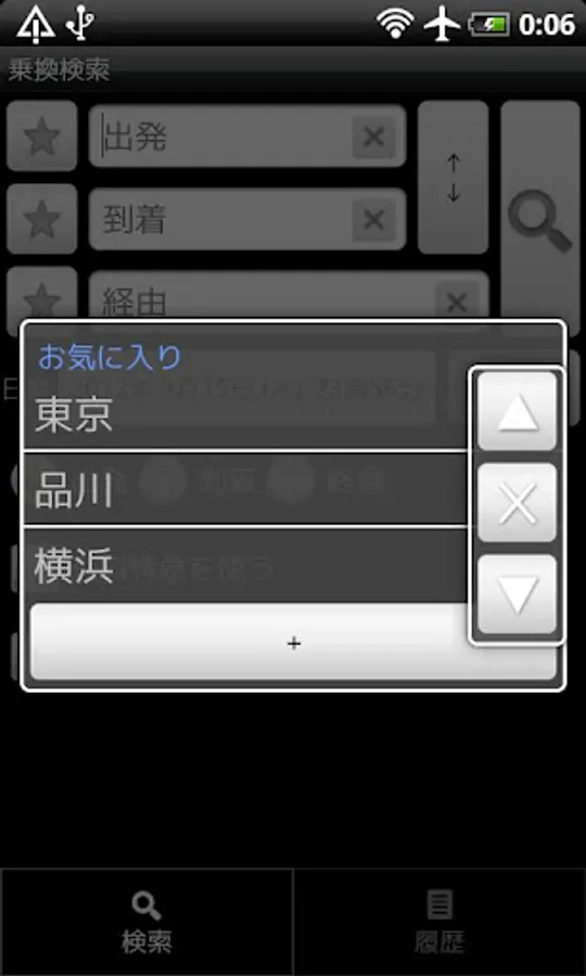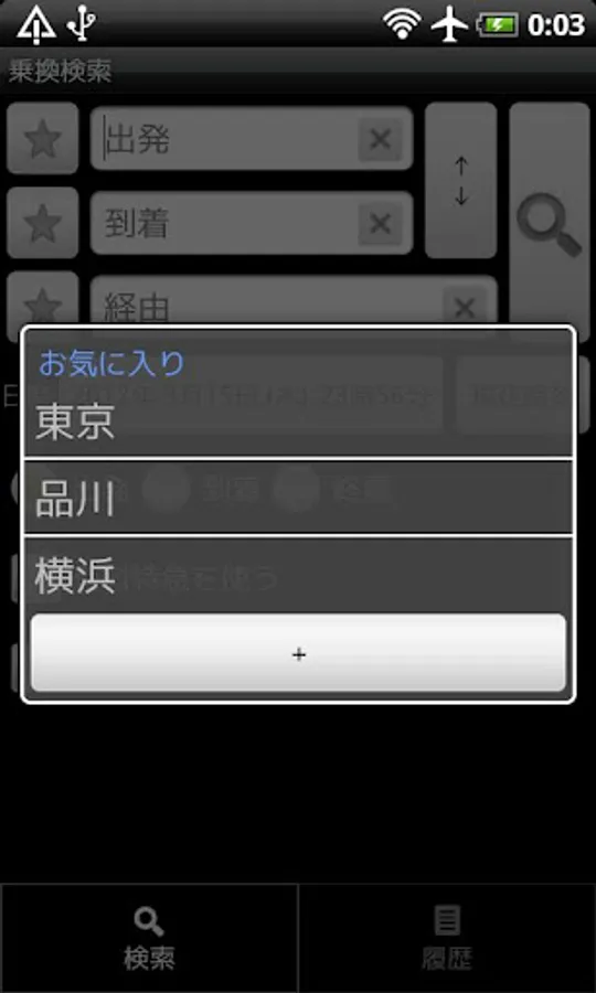 検索時の駅名も履歴として保存され、次回以降に素早く入力できます。