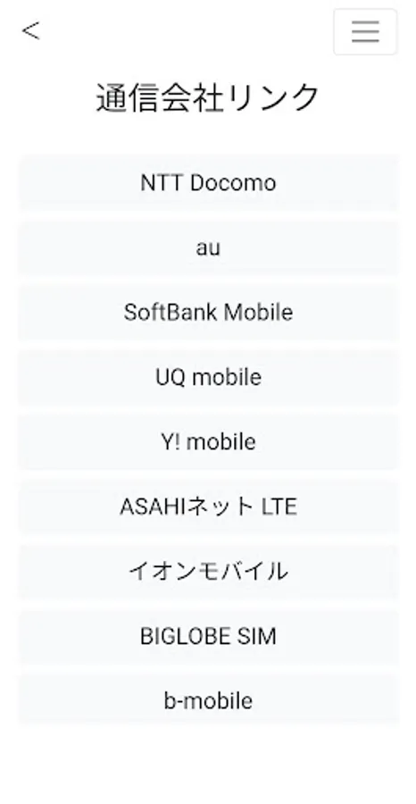 SIM company: Links to carriers, MVNO companies, and smartphone companies.
