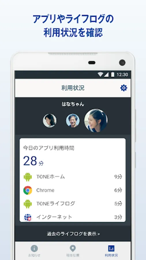 Such as the family of the current position and today's app usage of children, you can see immediately visually that you want to check frequently. It is easy since there is no need to be each time login.