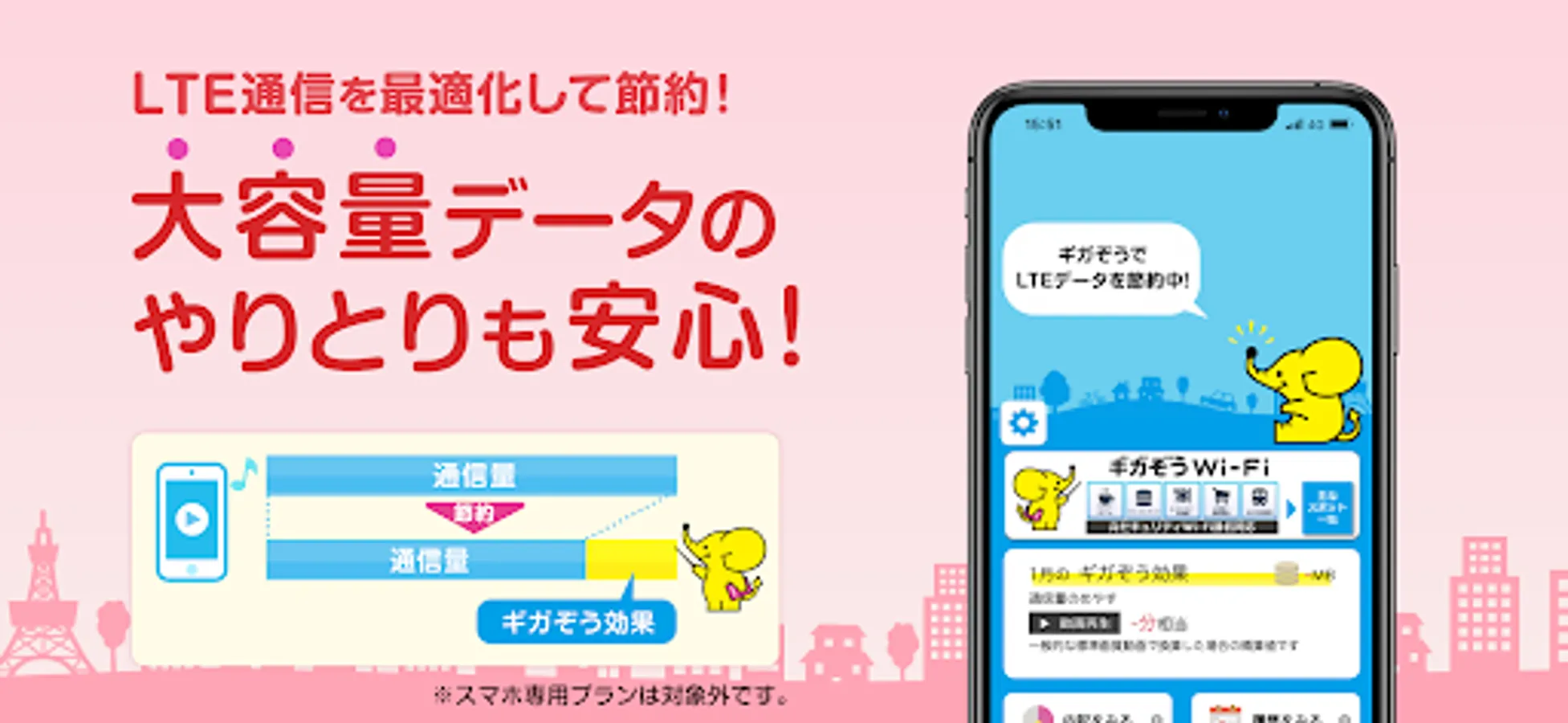 ・If you save mobile data communication (compress LTE communication) with the Giga Elephant app,