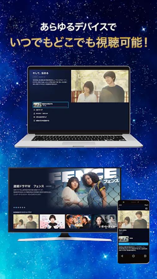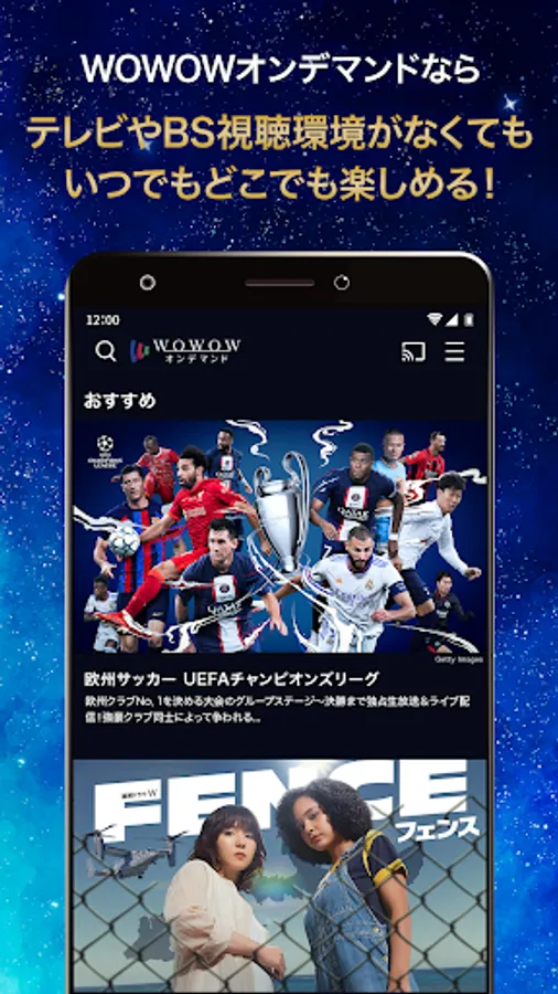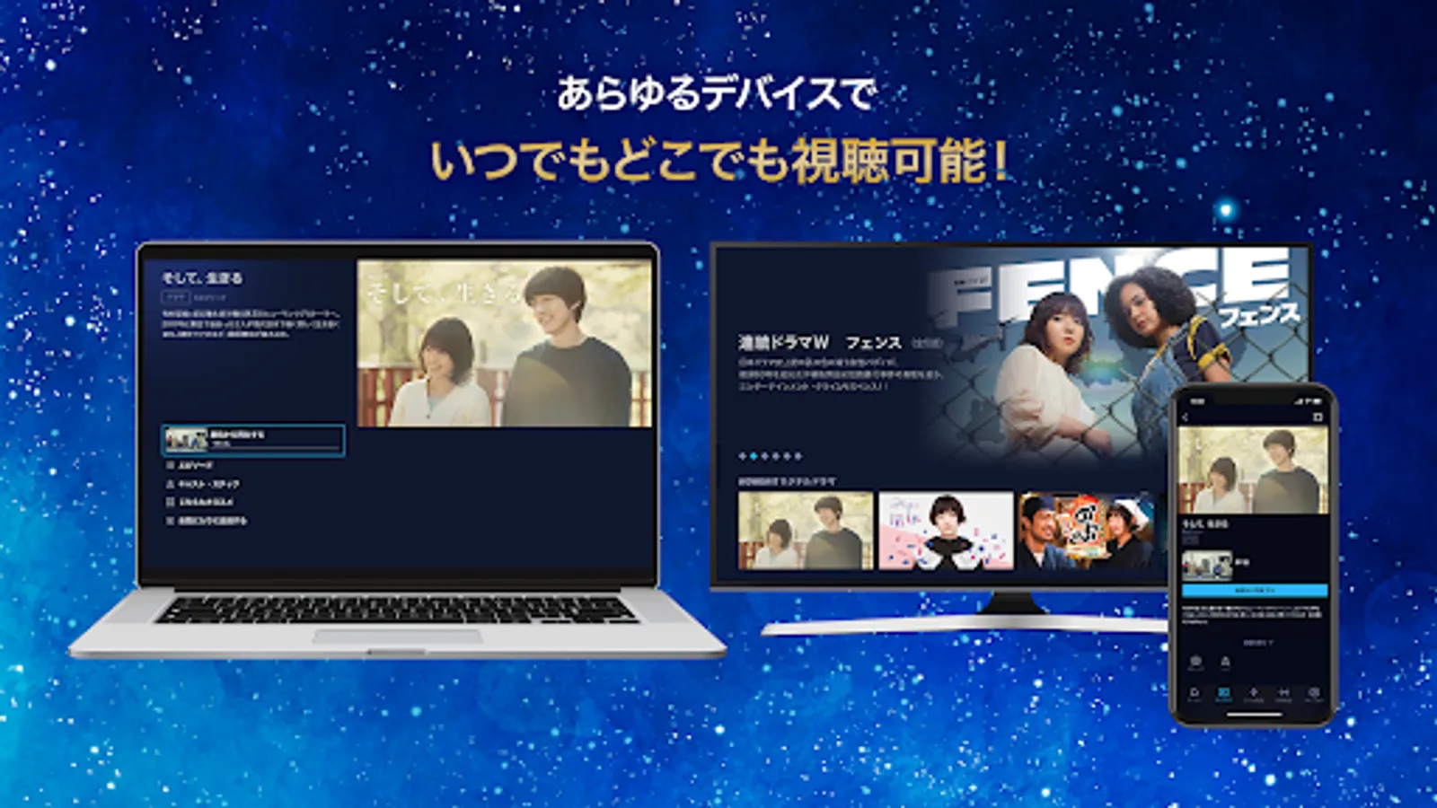 WOWOW On Demand can be used by casting to a large screen using Google Chromecast or Amazon Fire TV.