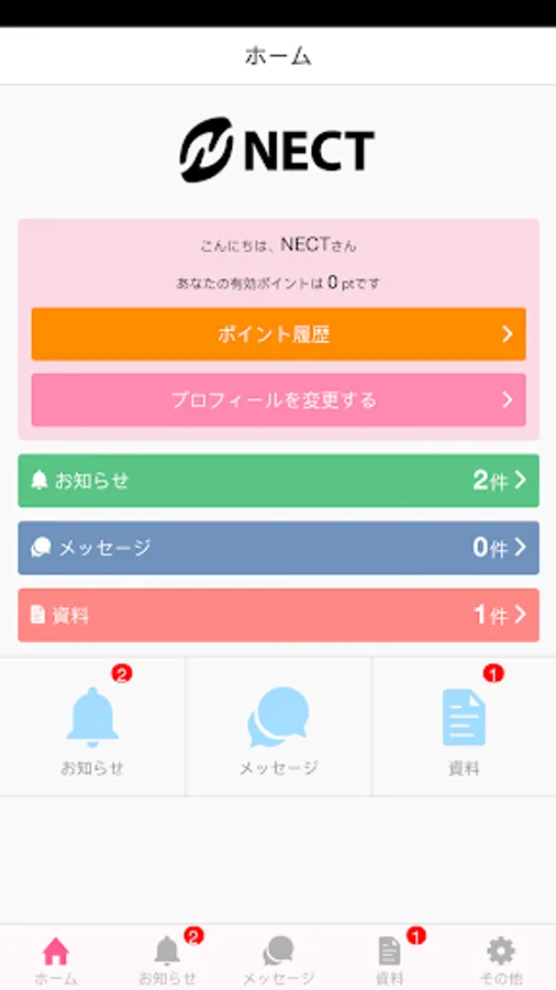 There are functions such as viewing notifications and materials, and chatting with messages.