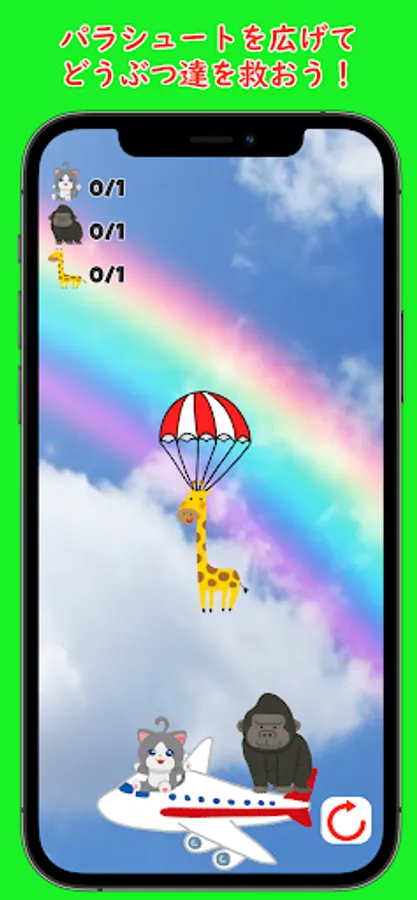 The operation is easy, first, let's flick the falling animal upward to spread the parachute.