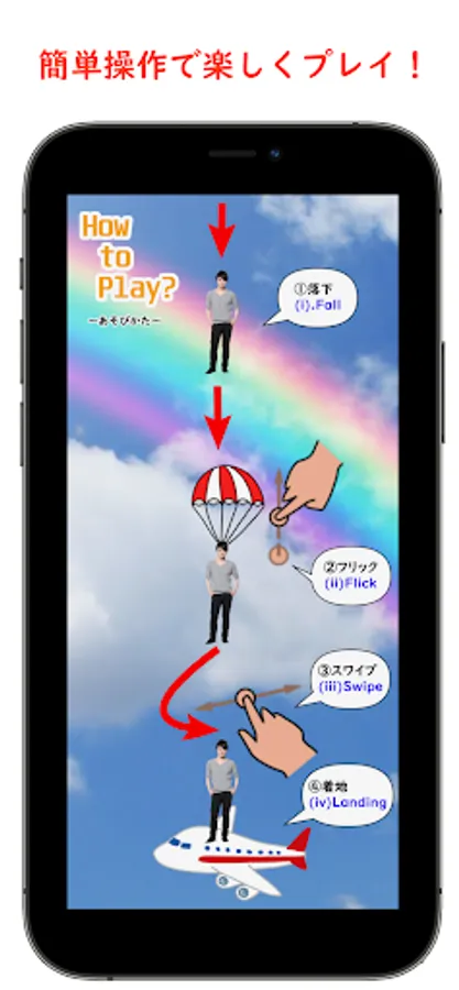 The operation is easy, first, let's flick the falling Junichi Kato upward to spread the parachute.