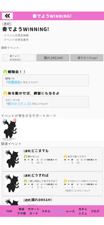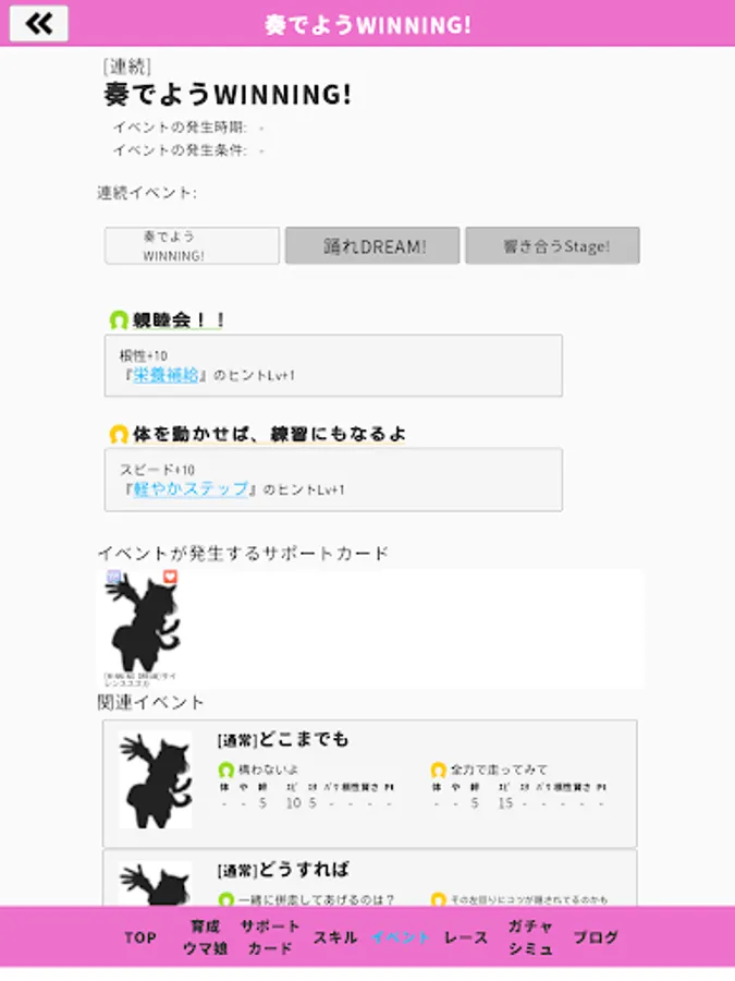 If you find interesting information, you can also cross-access like training horse girl → skill → event.