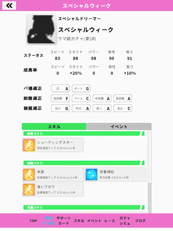 Includes training horse girls, support cards, related events, skills, racetracks, and gacha data that appear in the game. (The latest data will be updated from time to time)