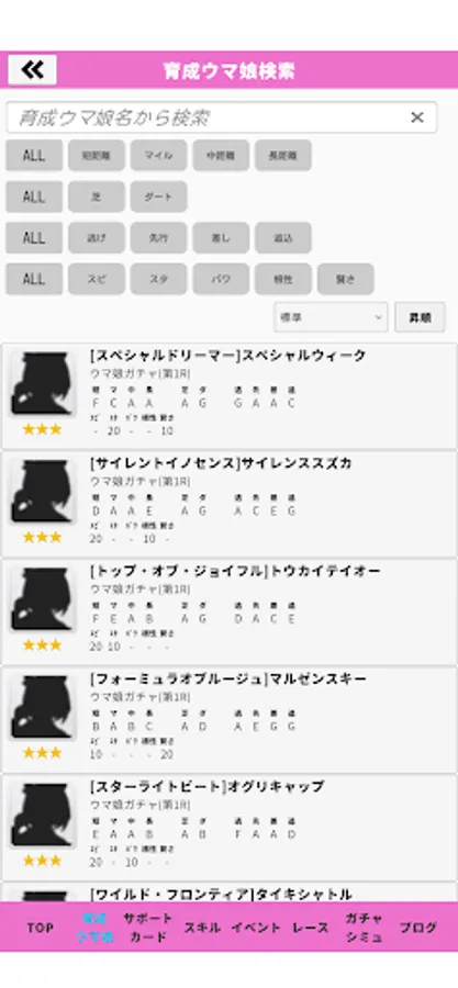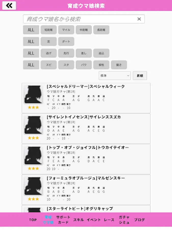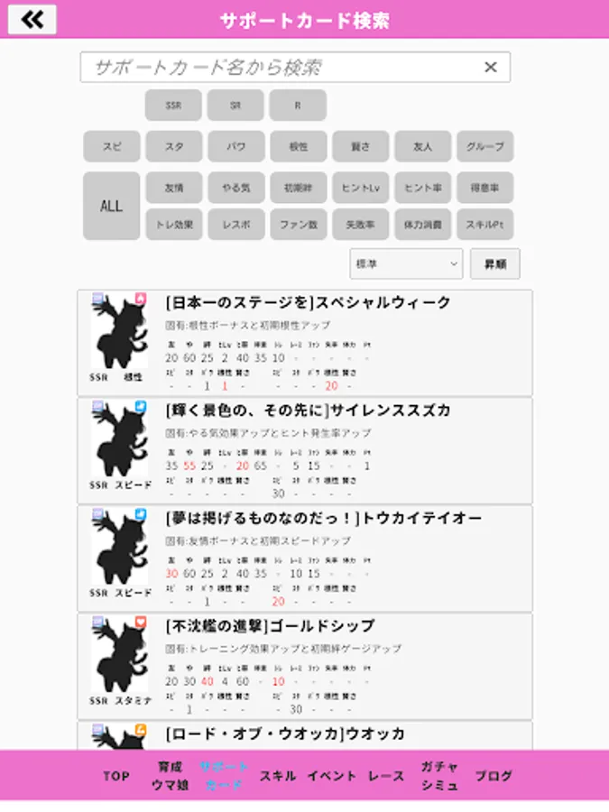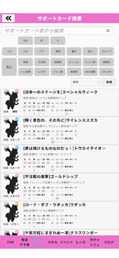 This is an unofficial comprehensive database app for the game app "Uma Musume Pretty Derby" provided by Cygames.