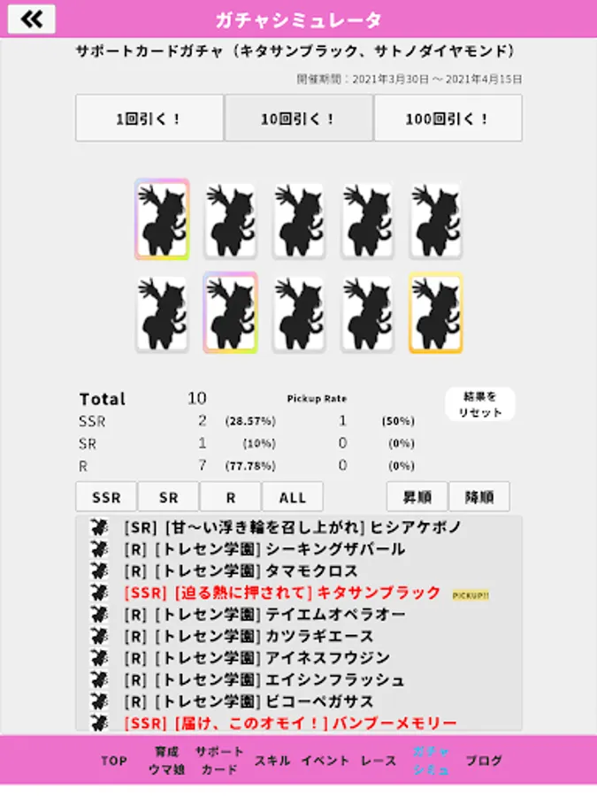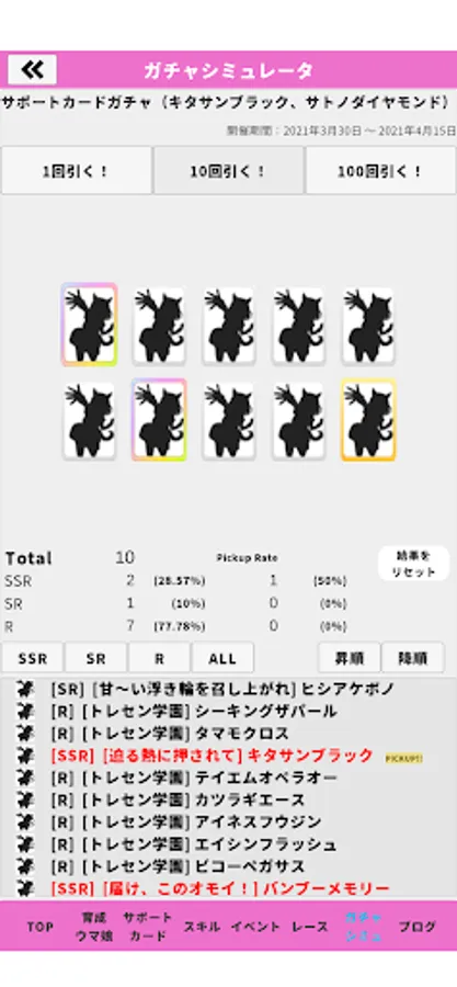 Since it is equipped with a gacha simulator, you can also simulate gacha held in the past from the latest gacha.