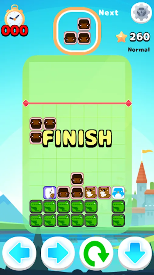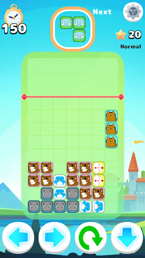 Arrange the falling blocks in the 7x9 field by operating the buttons.