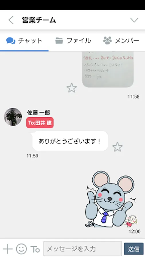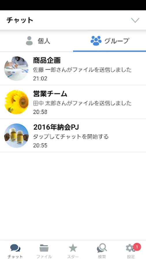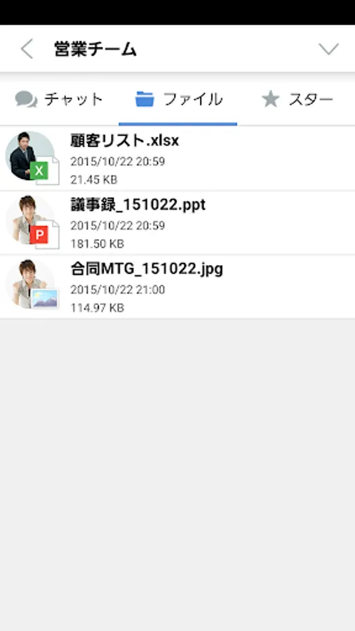 You can chat and share various files that are essential for your business, such as Office documents. In addition, files can be easily searched by sender file type for each chat.