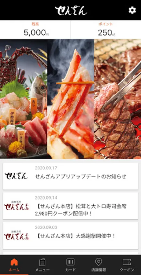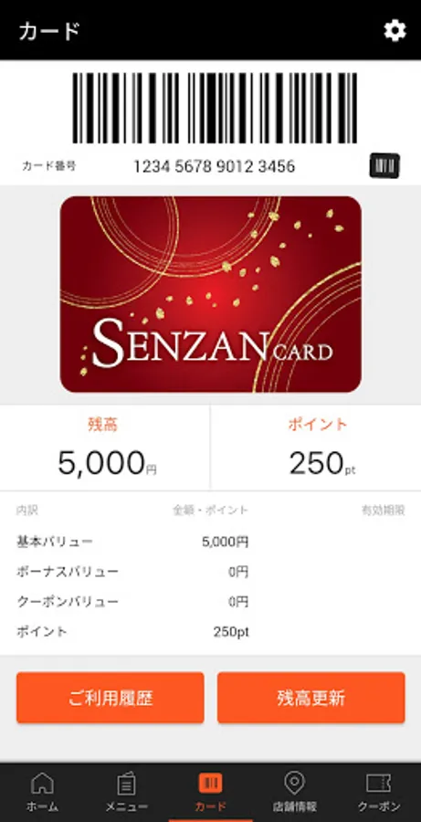 After that, enter the card number and PIN code on the back of the "Senzan Card" in this application to use the following functions.