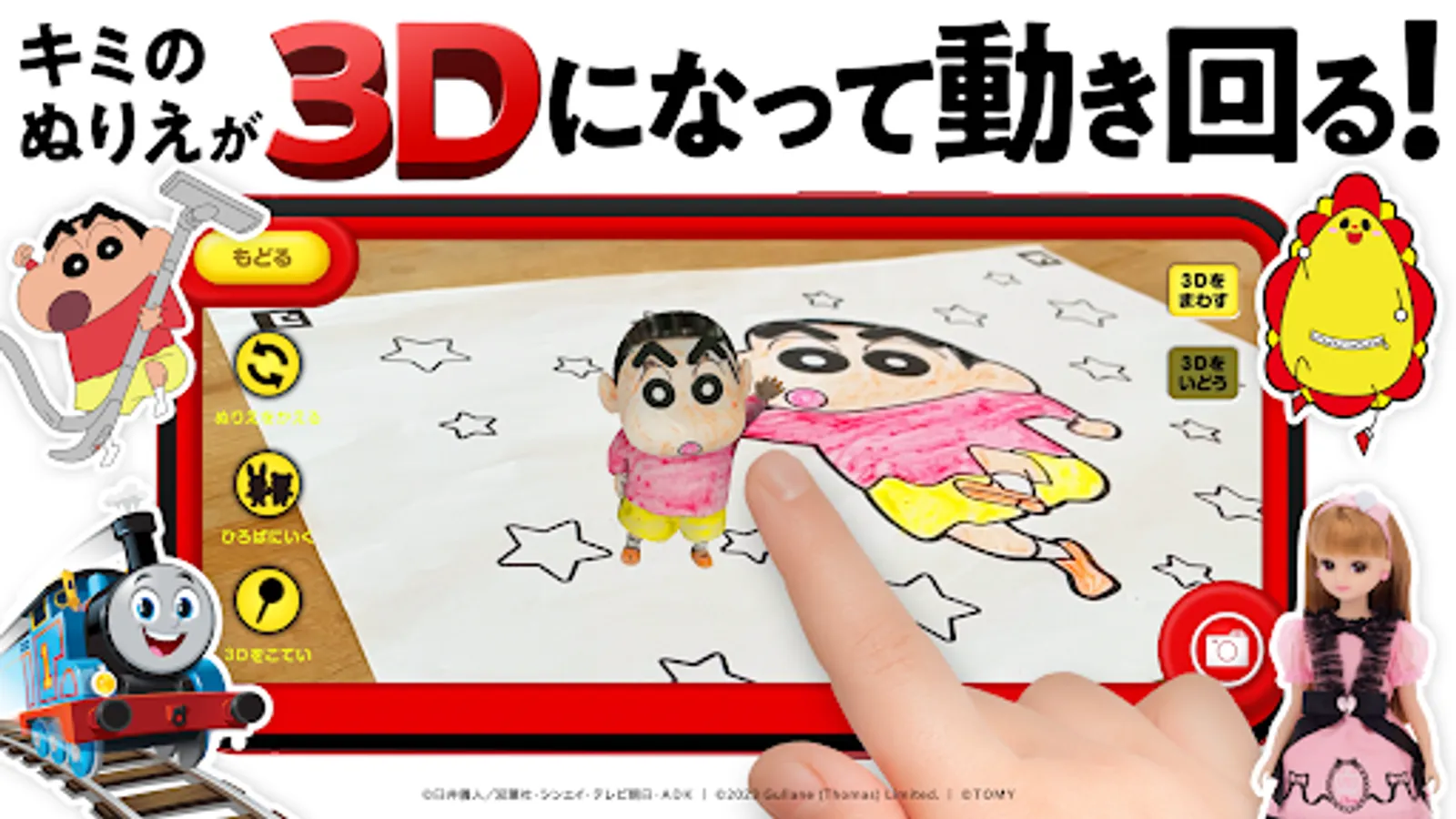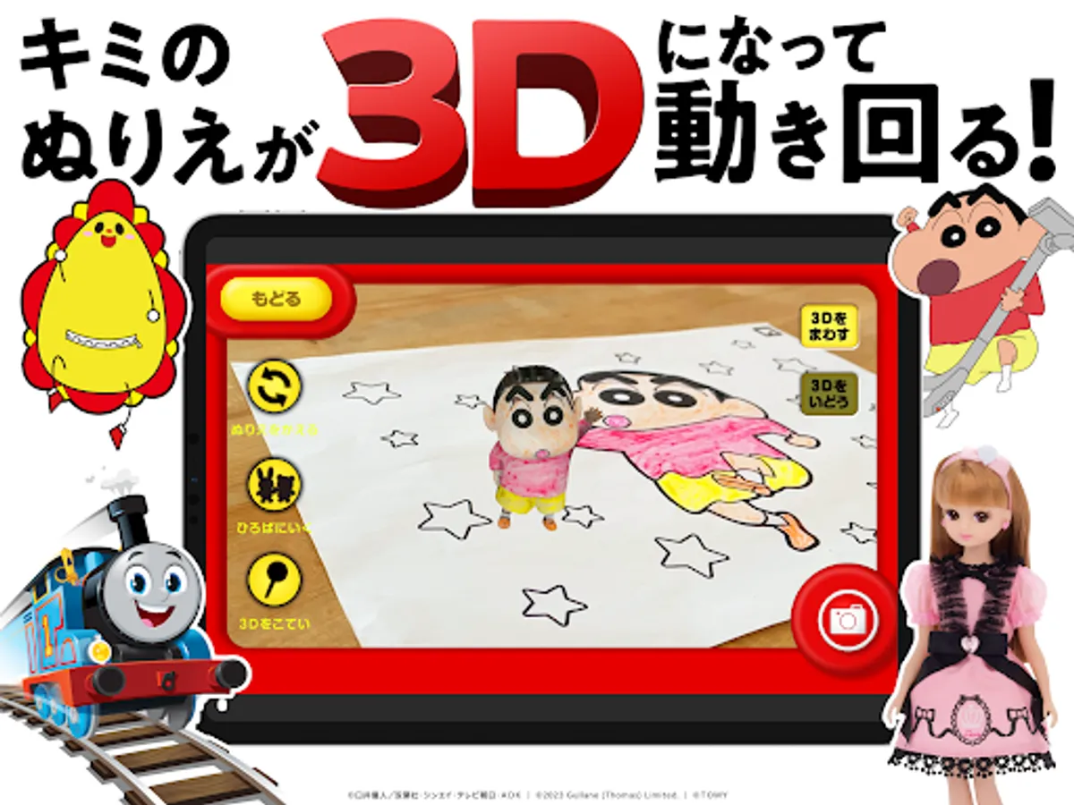 You can enjoy the function to digitally paint the coloring and the function to move the digitally painted coloring in 3D on the terminal.
