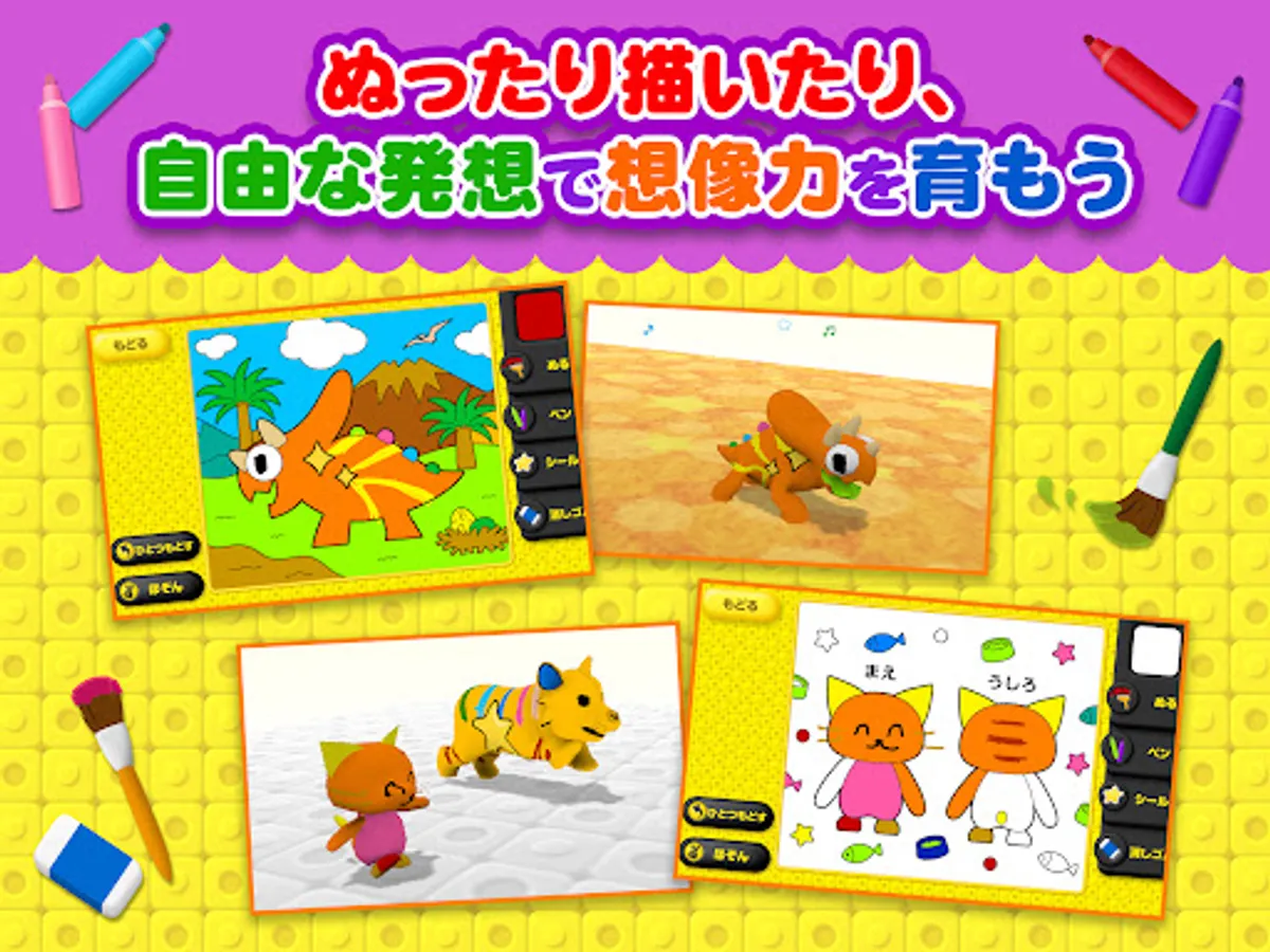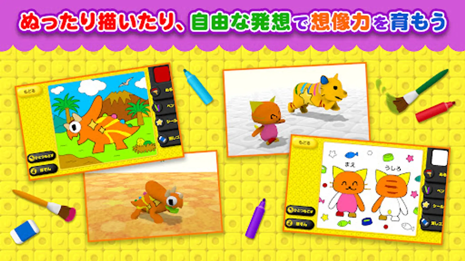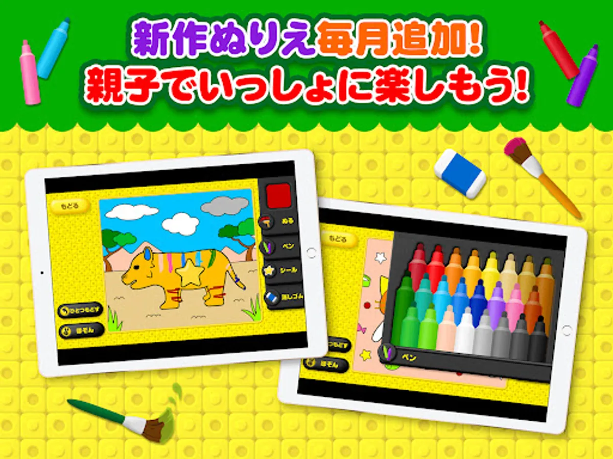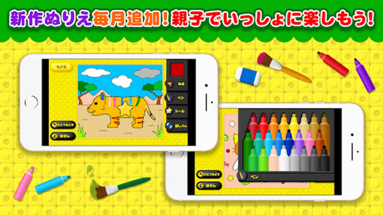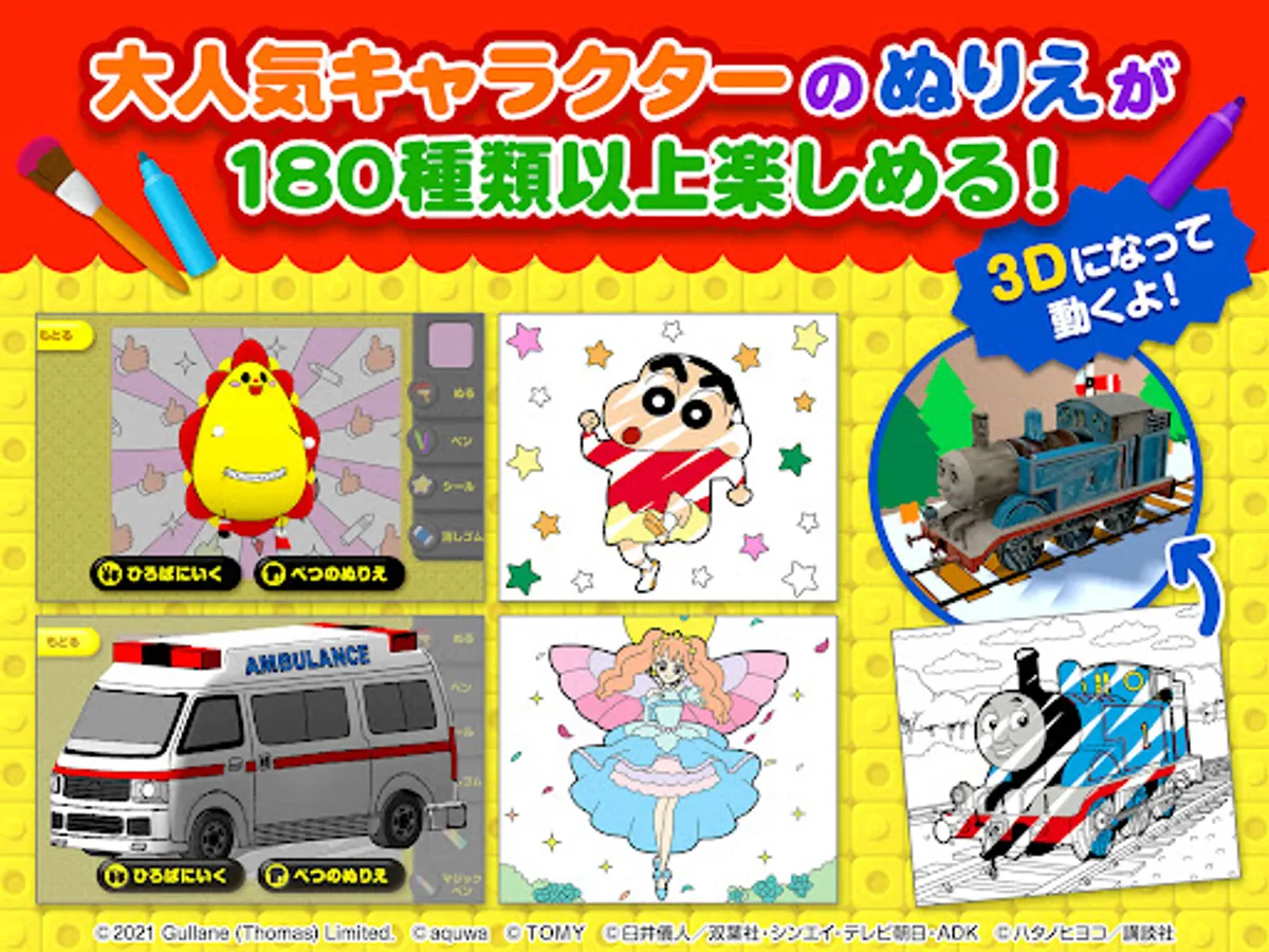 Use your finger to paint your favorite color on the app's coloring page and decorate with stickers. You can repaint as many times as you like, and you don't need crayons or colored pencils, so you can enjoy it while you're out and about.