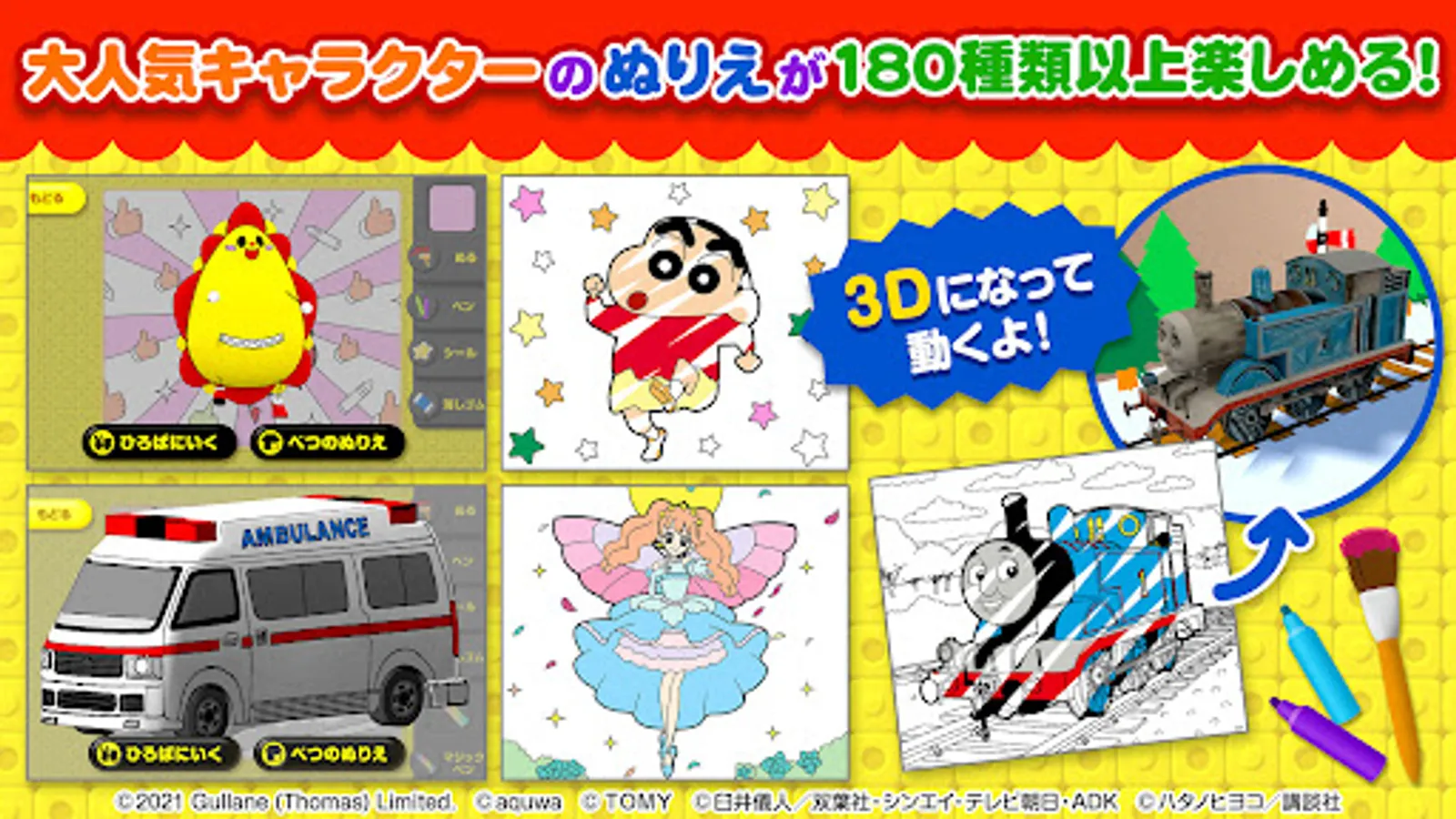 Sun Sun Kids, Sanrio, Thomas, Tomica, Licca-chan, Koupen-chan, Crayon Shin-chan, Hanappa, Secret Pompom-chan, Kaiju Step, Doodle Creator You're sure to find a character you like!
