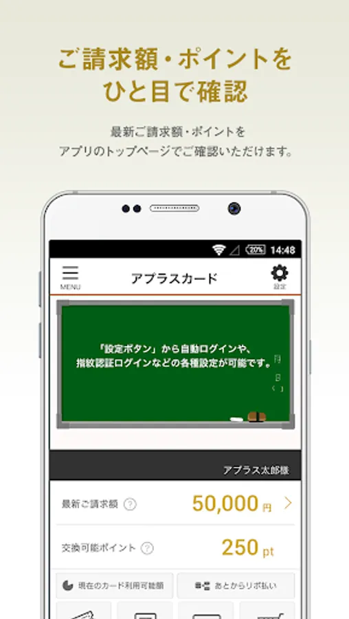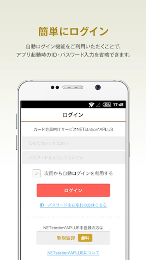 You can easily use the main functions of the APLUS card member site "NETstation * APLUS" with this application.