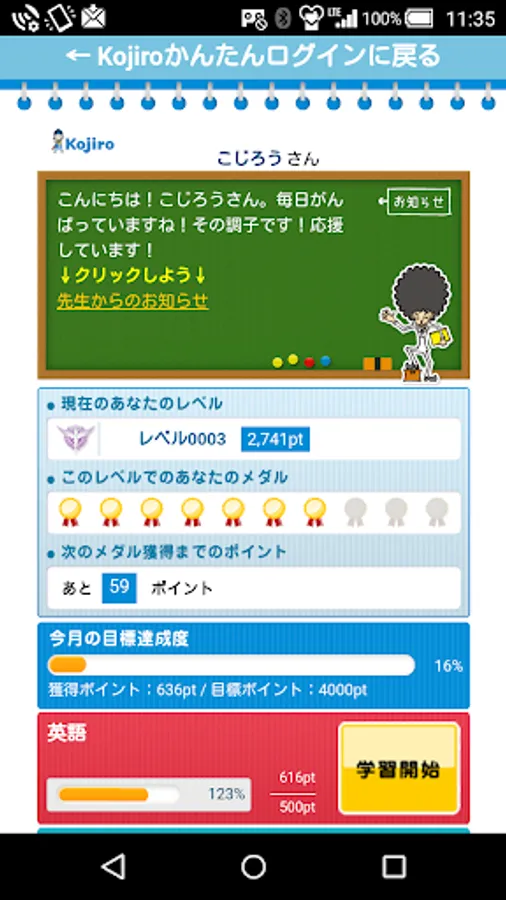 学習の習慣がなくても、操作しやすいインターフェイス・4択式の出題・ポイントの仕組みで、継続的に利用できるような工夫を凝らしています。