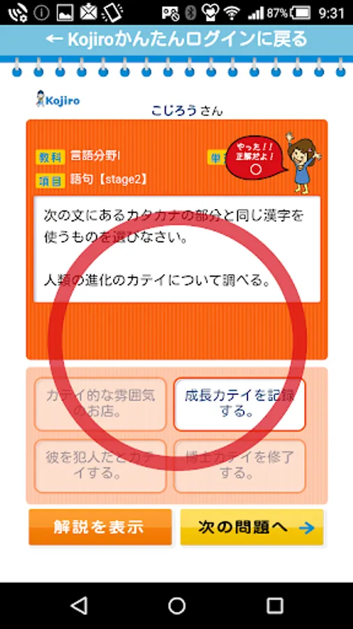 理解できたら新しいステージが解放!メダルもGETしながら、難易度の上がる問題へもゲーム感覚で挑戦できます。