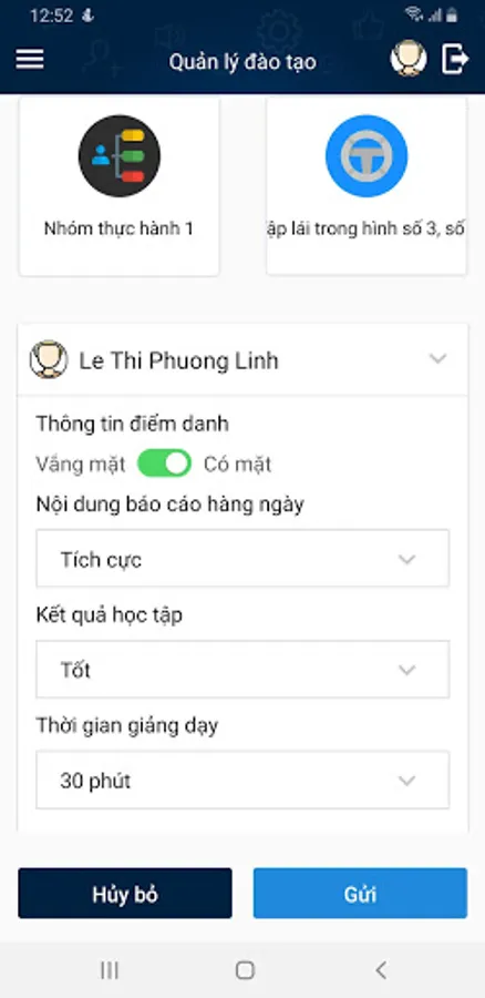 Application developed by VICET Thanh Hoa Driver Training & Test Center to assist teachers in taking attendance during the teaching process.