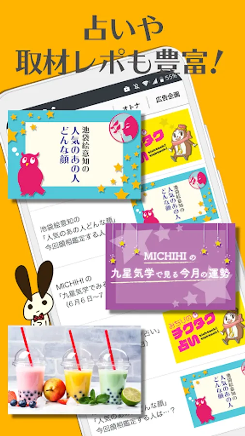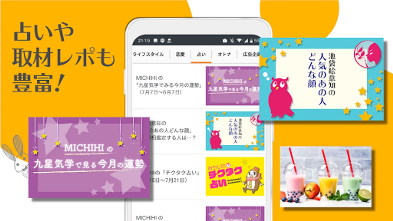 厳選したエンタメ速報、あるあるネタから、新たな発見が見つかる恋愛コラム、グルメレポやおでかけレポ、インタビュー記事など、サクッと読める役立つ情報を毎日配信!