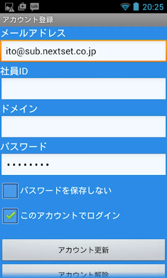 Enter input to the "e-mail address" to the e-mail address or "Employee ID", "domain"